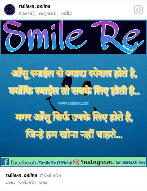 आँसू Smile से ज्यादा special होते हैंक्योंकि Smile तो सब के लिए होती है।मगर आँसू सिर्फ उनके लिए होते हैजिन्हे हम खोना नही चाहते।।